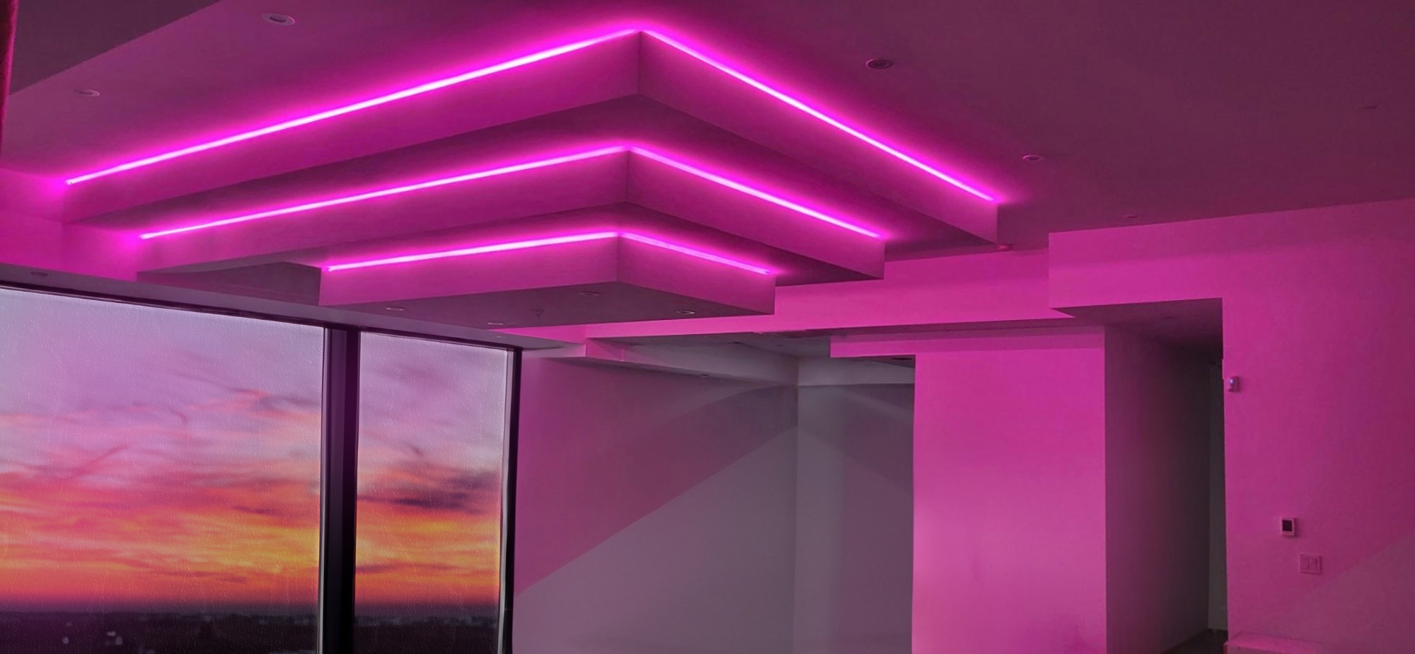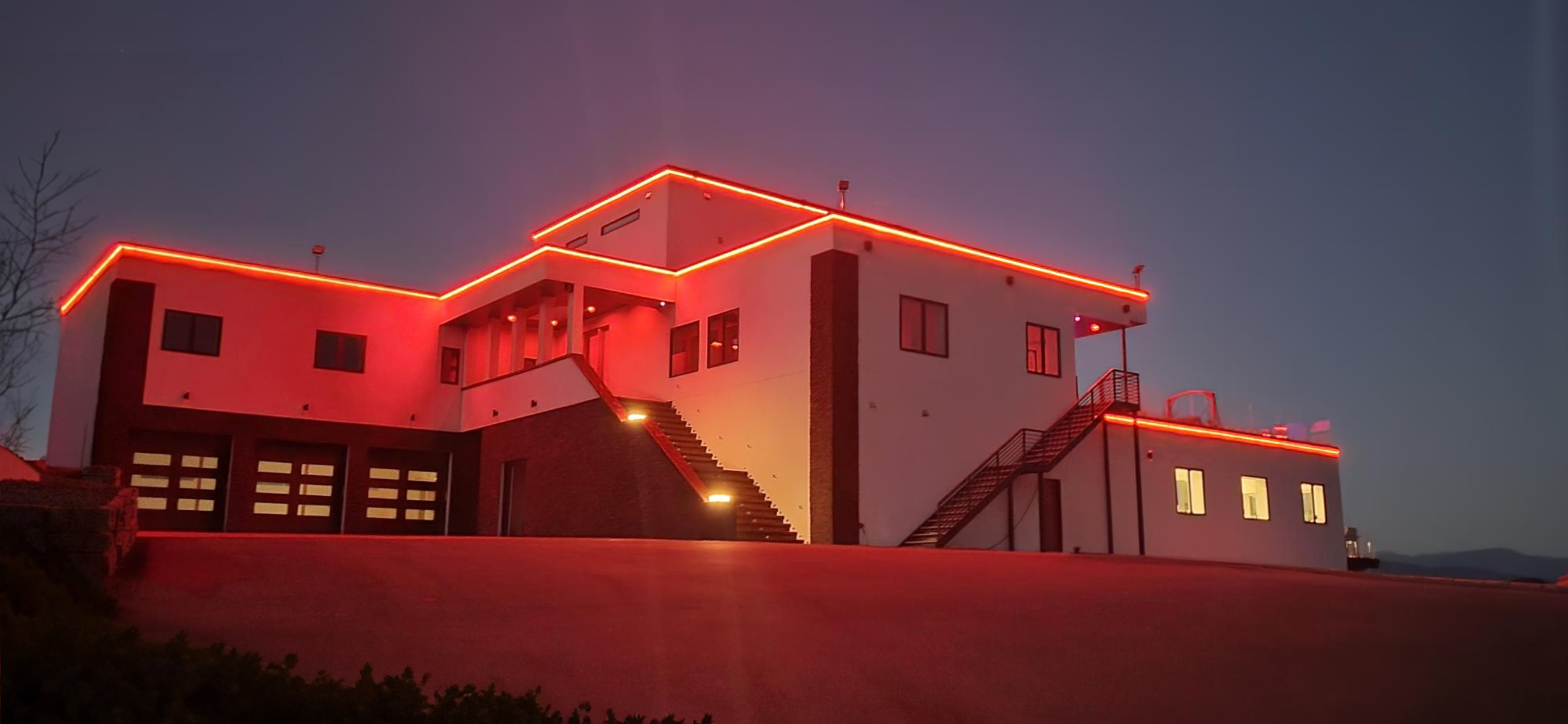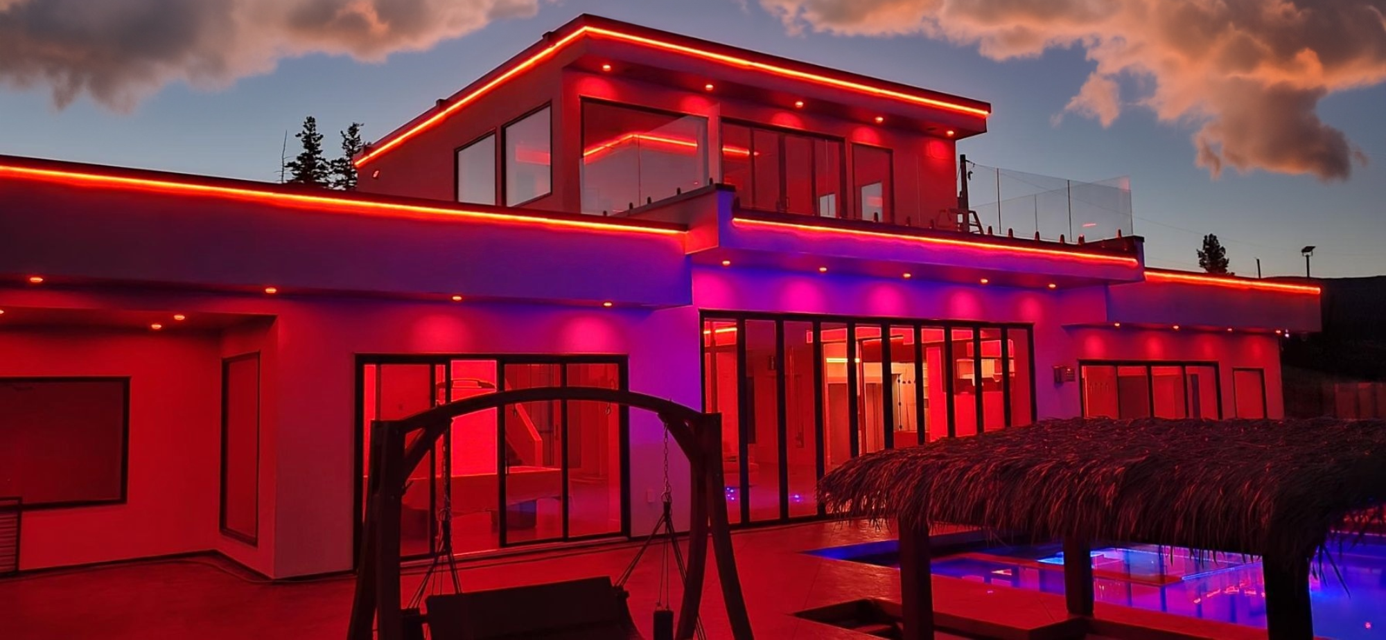 This 1st Place winning design features Vision 120 linear LED lighting throughout a striking hilltop residence. By day, its cubist architecture commands attention with bold, angular forms. By night, red LED accents trace the structure’s edges, giving it a dramatic, otherworldly glow.