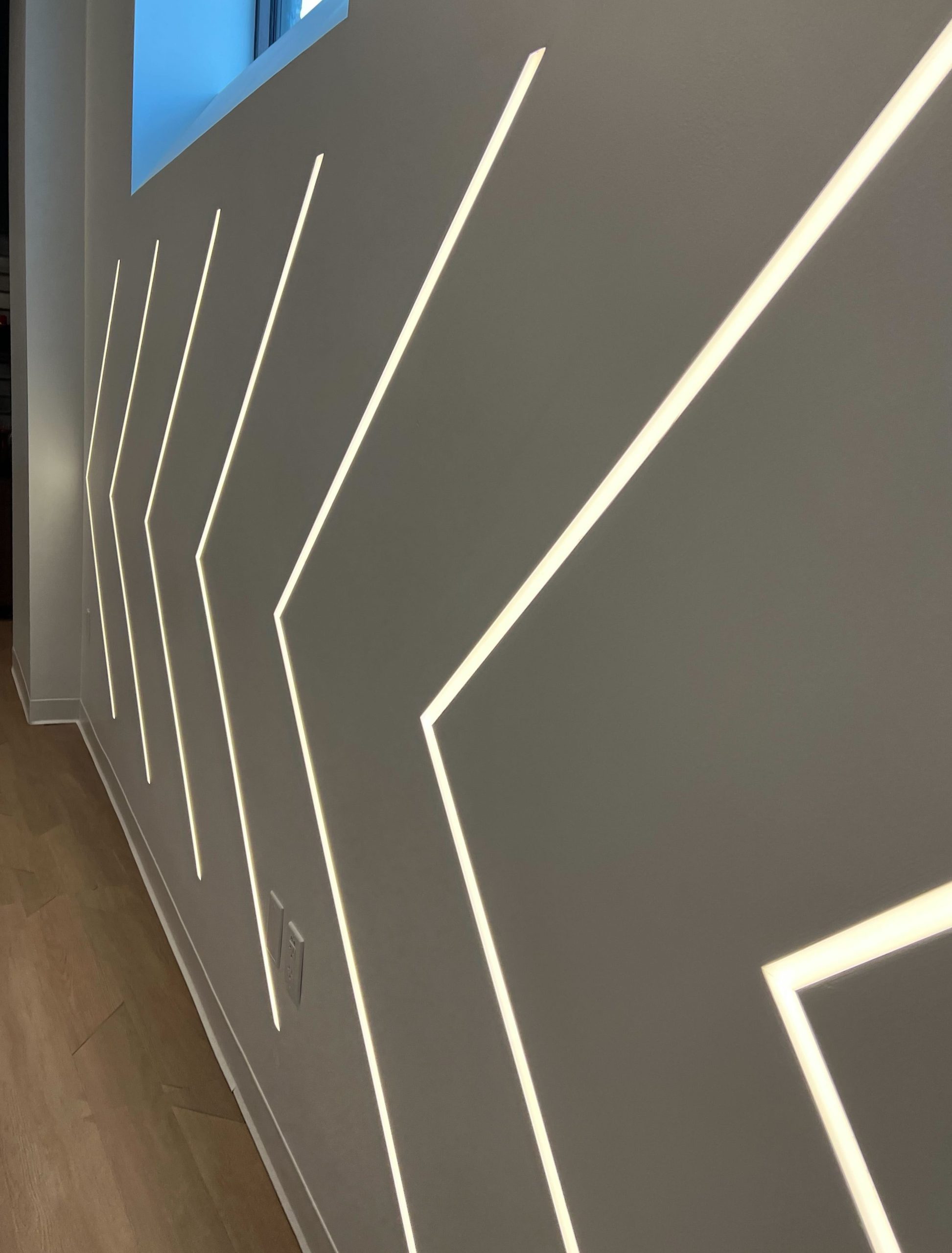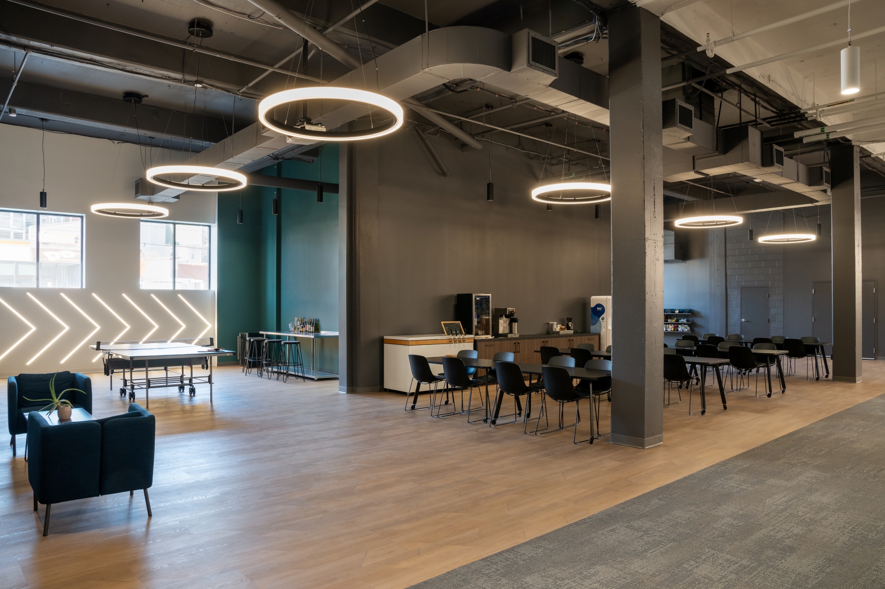 Awarded 2nd Place, this design blends circular suspended fixtures with angular linear LED wall accents to create a bold, tech-inspired environment. More than just illumination, the lighting defines the space’s identity, merging task and accent lighting to reflect the innovative nature of the business.