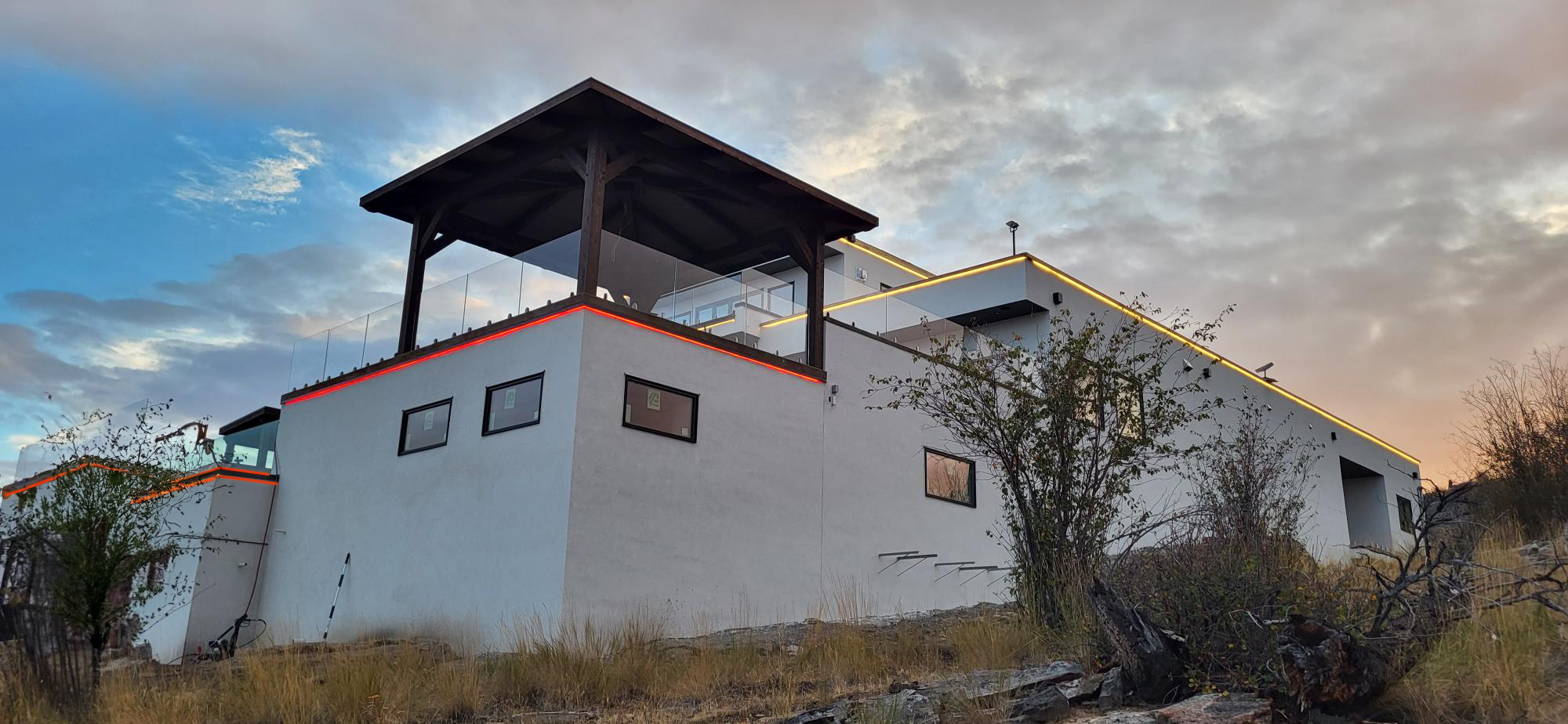 This 1st Place winning design features Vision 120 linear LED lighting throughout a striking hilltop residence. By day, its cubist architecture commands attention with bold, angular forms. By night, red LED accents trace the structure’s edges, giving it a dramatic, otherworldly glow.