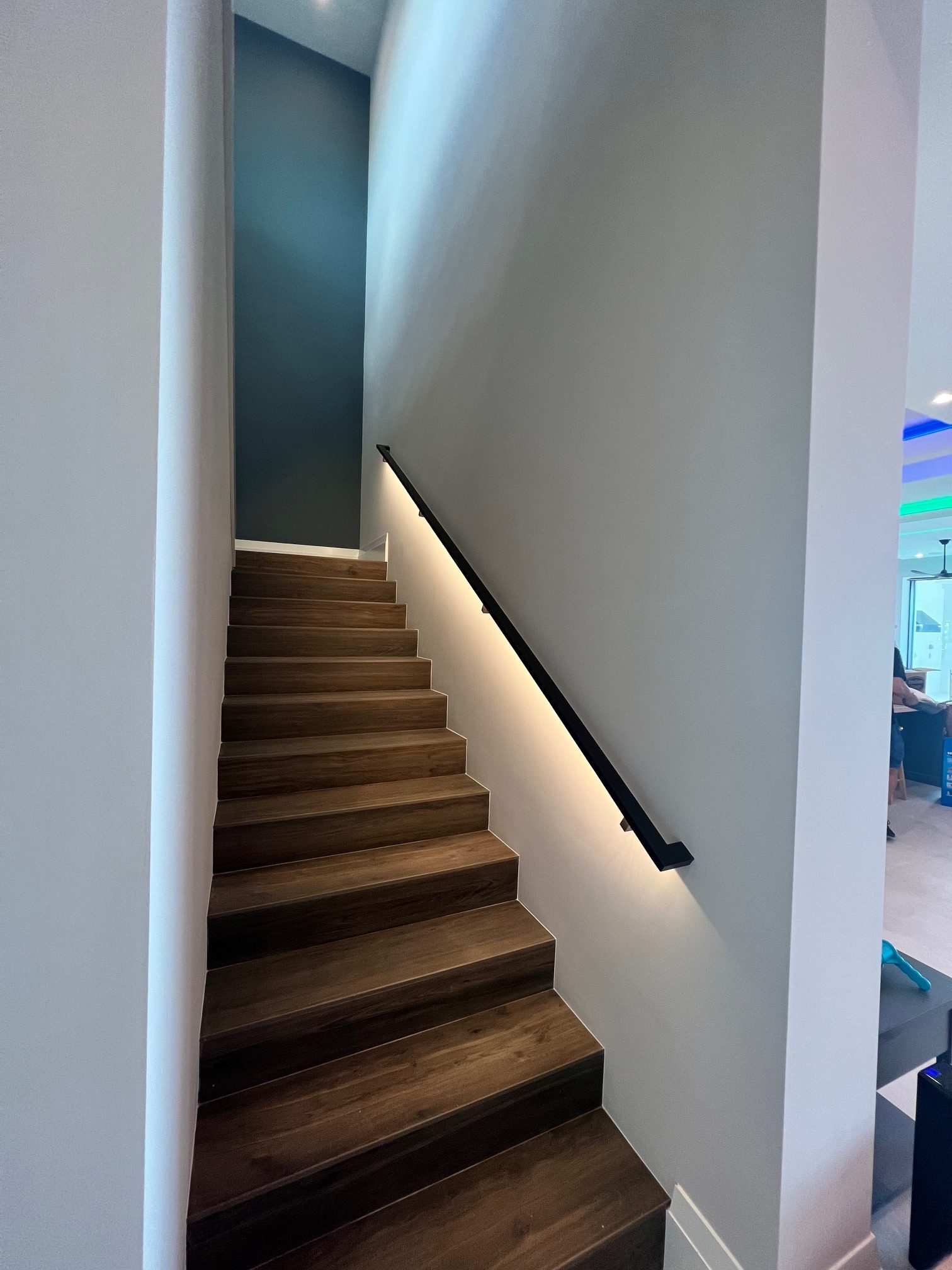 This 1st Place design uses RGB lighting to visually define and separate areas within a multi-compartmentalized ceiling, creating a dynamic and memorable atmosphere. In this stunning waterfront home, the lighting adds a bold layer of visual impact beyond the natural beauty of the shore.