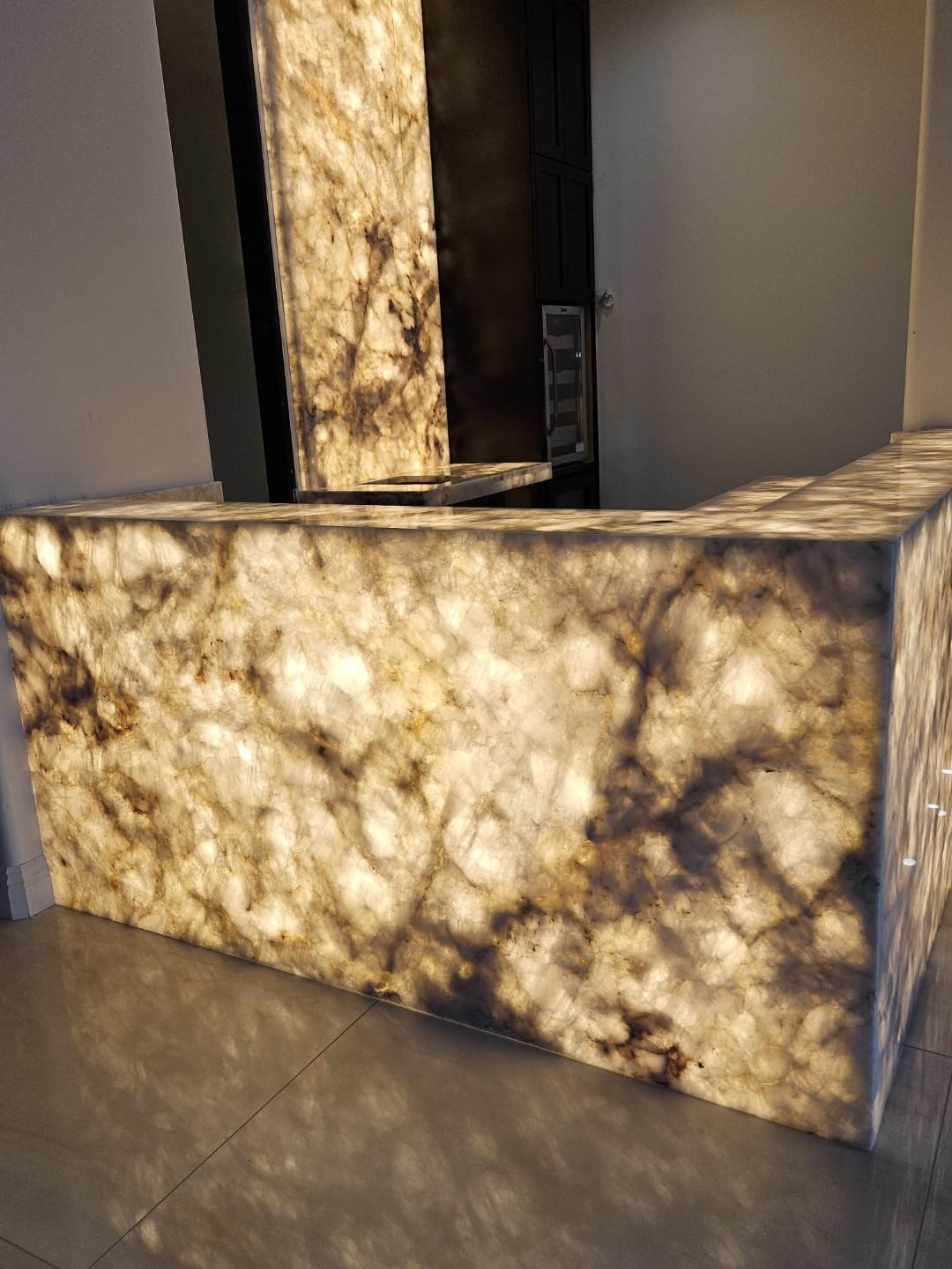 Awarded 1st Place, this design uses Lamina backlighting to enhance a marbled surface, casting a dramatic glow across a half-wall and surrounding vertical planes. The result is an ethereal, lava-like effect that brings striking visual depth and atmosphere to the space.