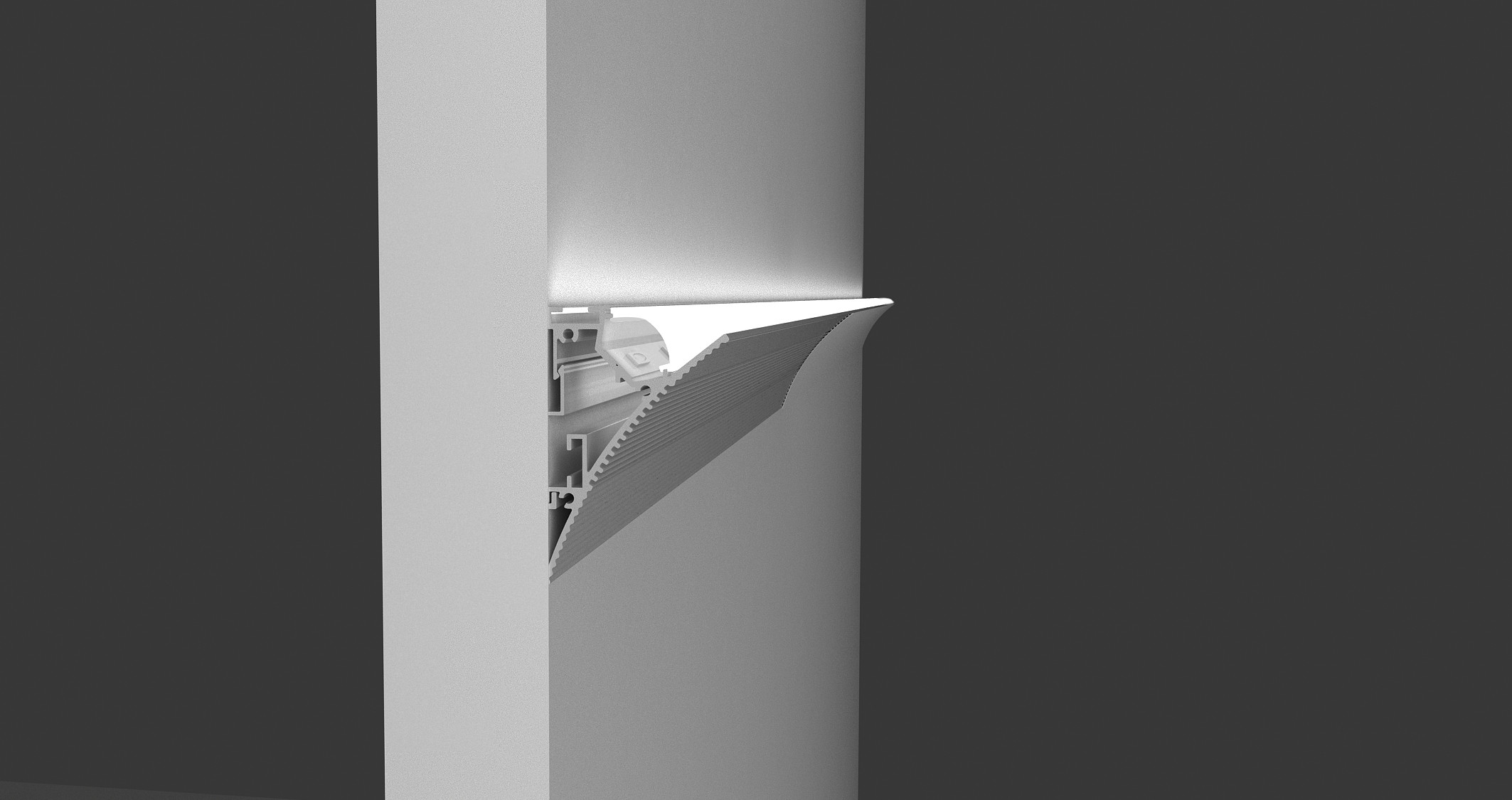 An architectural quality solution to mounting LED tape in coves. Aluminum construction. Comes complete with lens.